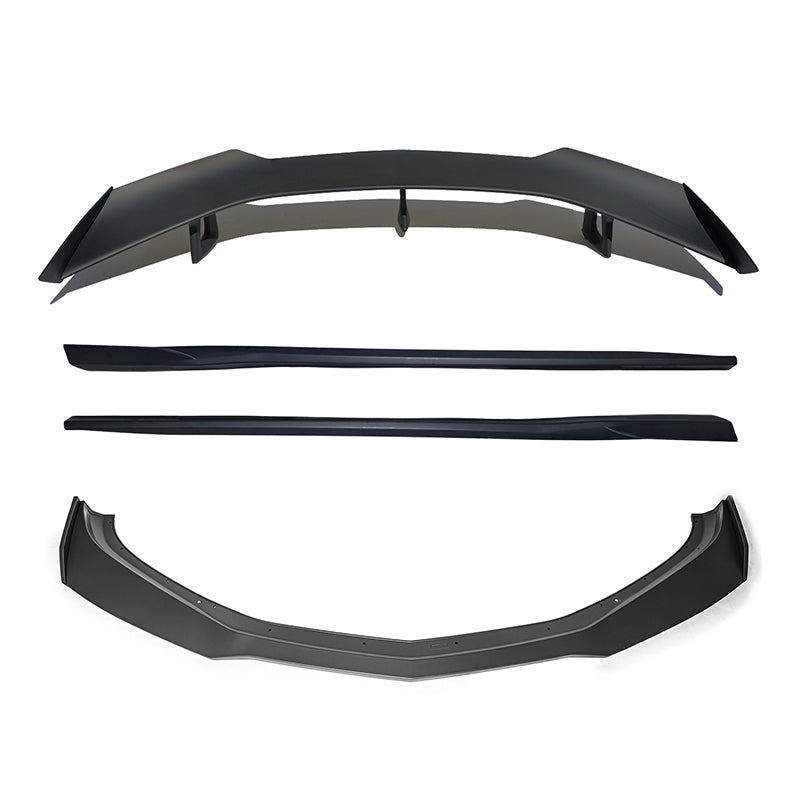 The 6th Gen Camaro SS ZL1 1LE Track Package Aero Kit enhances track performance with aerodynamic upgrades. It includes a front splitter, dive planes, carbon fiber hood, rear spoiler, and diffuser. The front splitter creates downforce for better grip, while ABS plastic side skirts offer lightweight strength. The larger rear spoiler boosts downforce at high speeds, improving stability and traction.