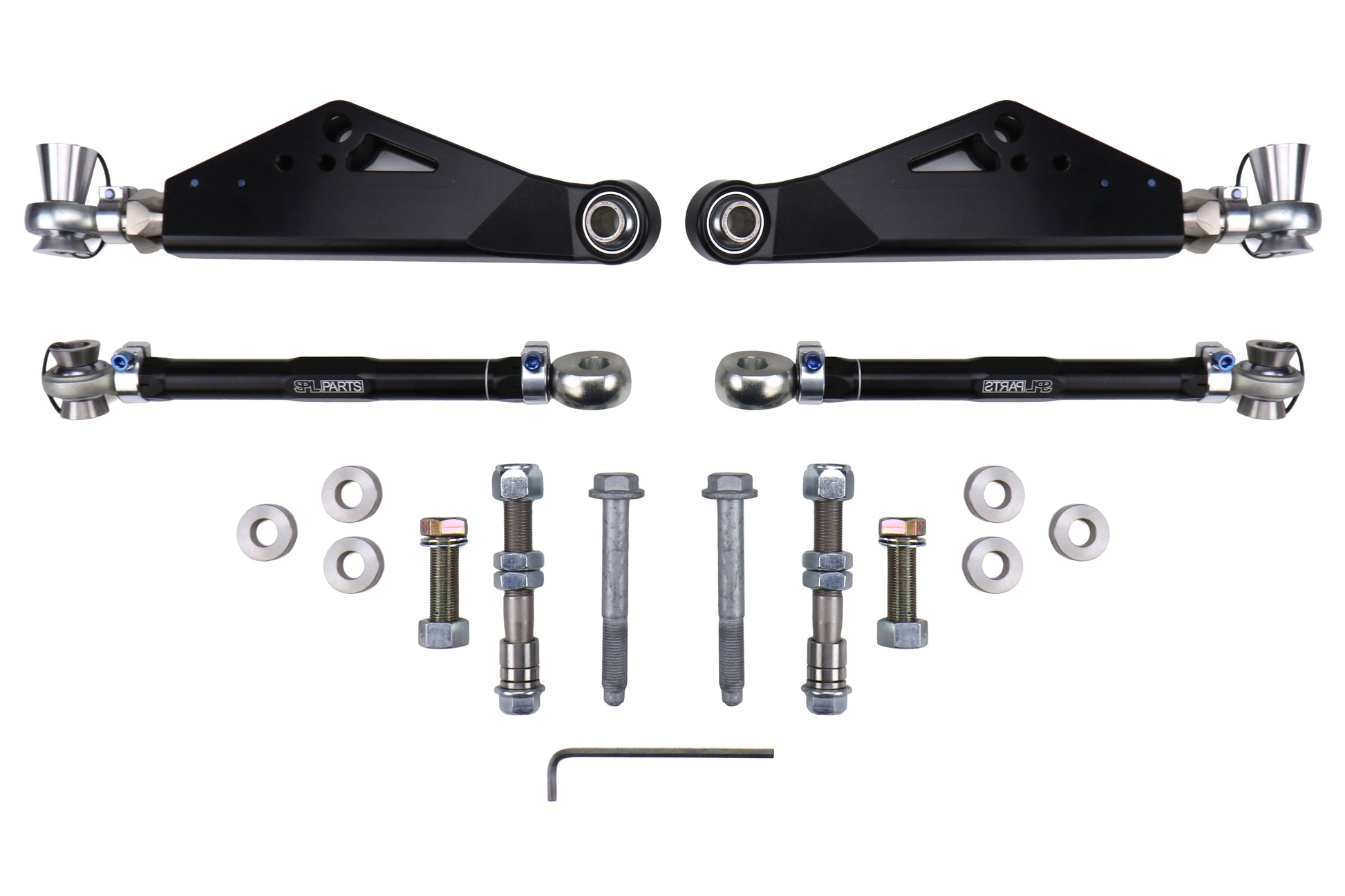 On this page, you are looking at the SPL Parts Titanium Front Lower Control Arms. These control arms have been designed to provide your vehicle with track width, camber, caster, roll center, and anti-dive adjustment.